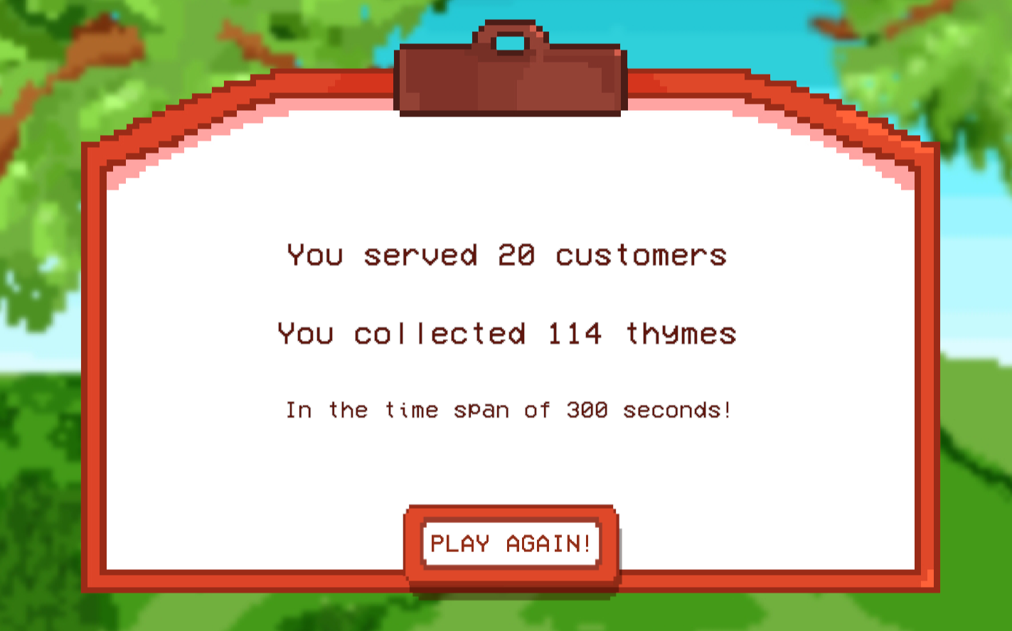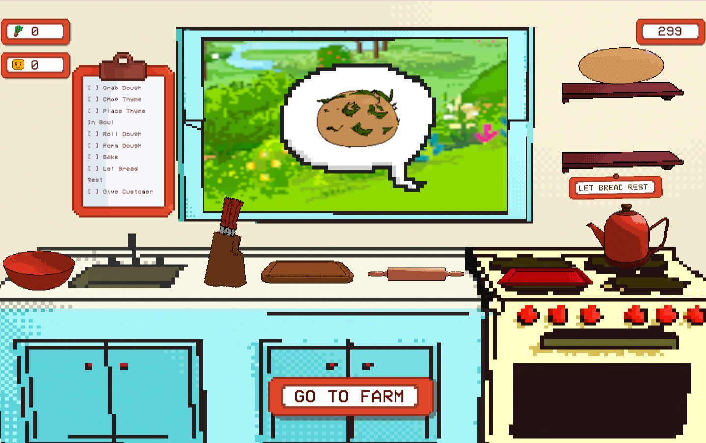 Time matters. You need to use it wisely to garden thyme and create herbed bread before the day ends. Serve orders correctly to keep customers happy, and see how well you managed your day once time runs out!